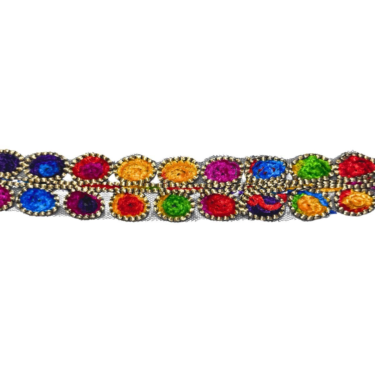GALON BORDADO MULTICOLOR 5CM DOBLE CIRCULO ART 161 X 20 YDS